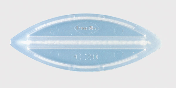 Die Kunststofflamelle C20 ist aus transluzentem Kunststoff und wird zum Verbinden von Werkstoffen wie Corian®, Varicor® usw. angewendet.